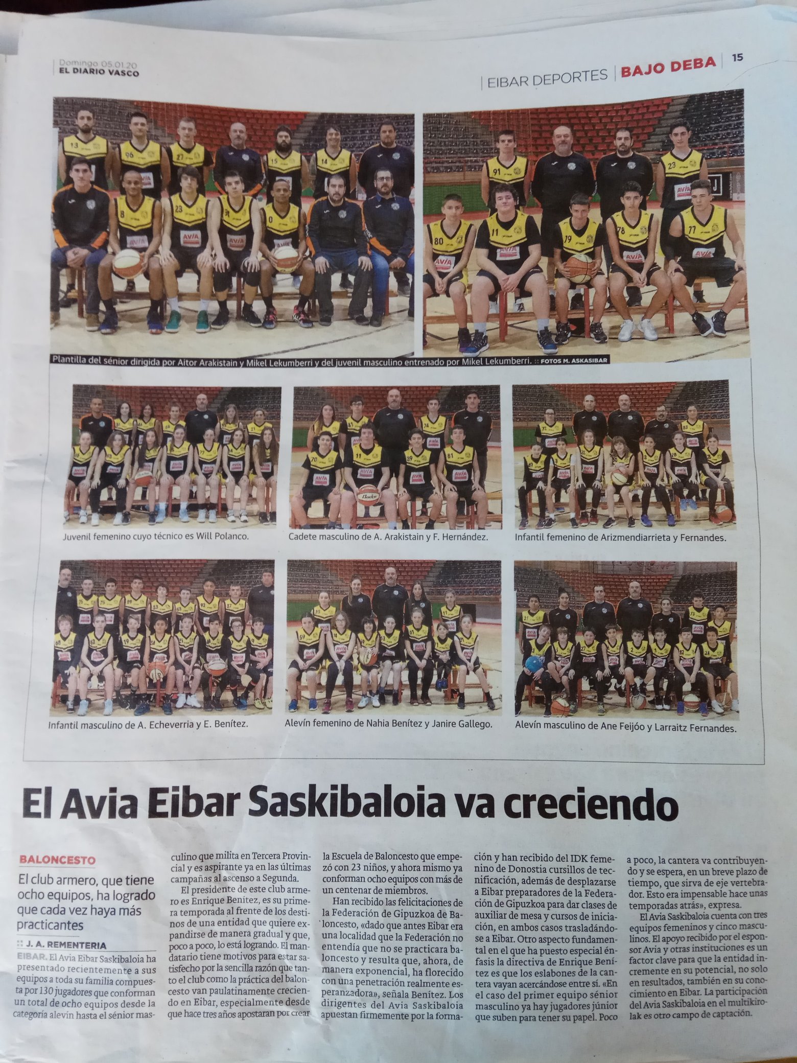 Duela egun batzuk, Diario Vascok, Avia Eibar Saskibaloiaren hazkundearen inguruko erreportai bat argitaratu zuen, klubeko zortzi taldeen aurkezpenarekin batera. Guztira 130 jokalari, alebinetatik seniorretara dira, urtez urte hazten ari den proiektuaren protagonista.
