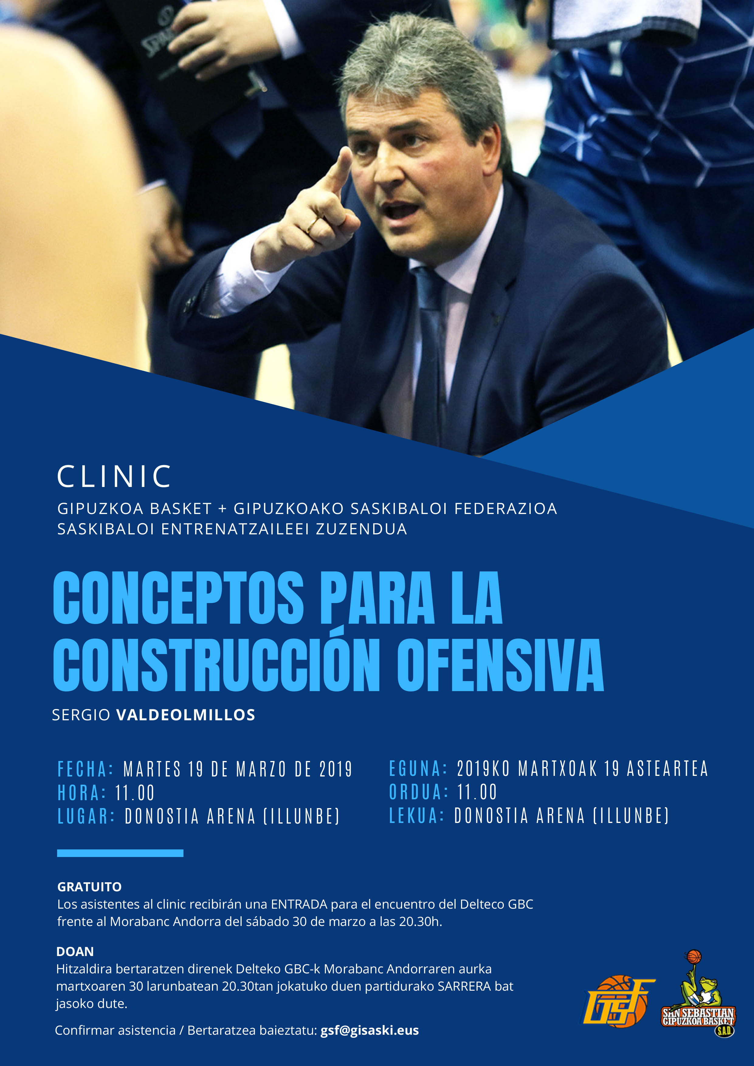 Hurrengo martxoaren 19 asteartean 11.00etan, Delteco GBC taldeko Sergio Valdeolmillos teknikariak entrenatzaileei zuzendutako hitzaldi bat eskainiko du Gipuzkoa Basket eta Gipuzkoako Saskibaloi Federazioaren arteko hitzarmenari esker.