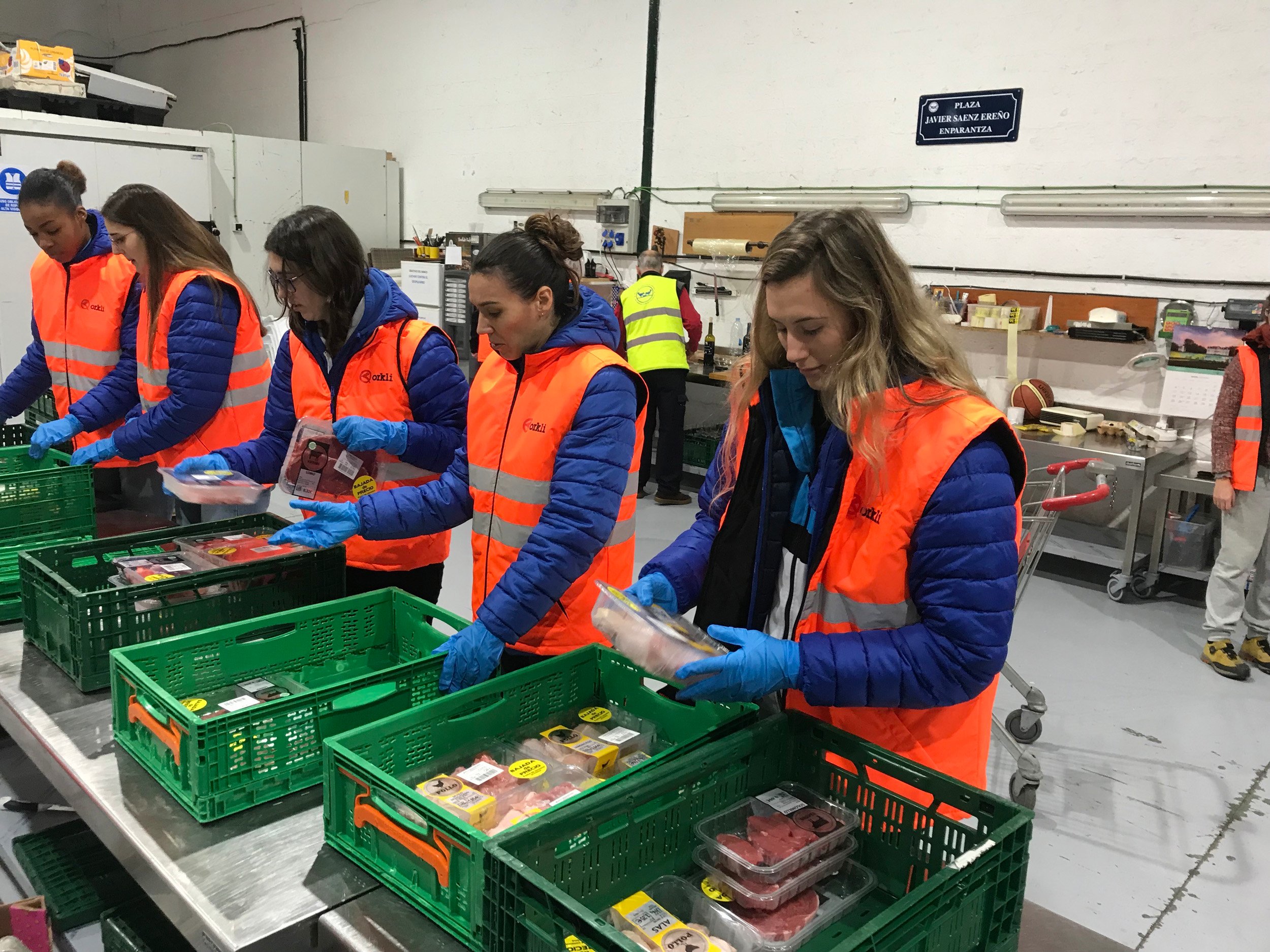 Este viernes 22 y sábado 23 de noviembre se organiza en Gipuzkoa la Gran Recogida anual del Banco de Alimentos. La imagen de la campaña de este año es el IDK Gipuzkoa. Varias de sus jugadoras, entre ellas las guipuzcoanas Lara González y María Eraunzetamurgil, además de Iulene Olabarria, visitaron esta semana las instalaciones del Banco de Alimentos. Gracias a la labor de sus voluntarias y voluntarios, 17.880 personas acceden a alimentos suministrados por asociaciones de todo el territorio.