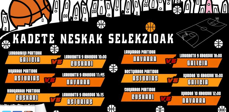 Dentro de la preparación, la selección de Euskadi cadete femenina disputará el torneo de Lasarte donde se medirán a Galicia, Asturias y Navarra. Allí podremos y disfrutar del mejor baloncesto cadete femenino. Las chicas de Joseba Lizarralde contarán con las bajas de tres jugadoras convocadas por la selección española: Murua, Mbomio y Pereda.