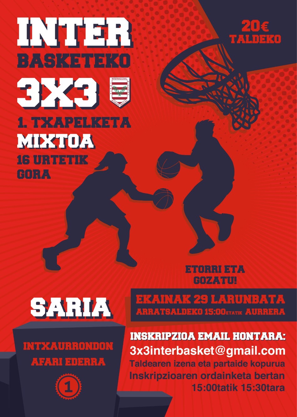 Inskripzioak 3x3interbasket@gmail.com helbidera bidali eta 3x3ko informazioa luzatuko zaizue.