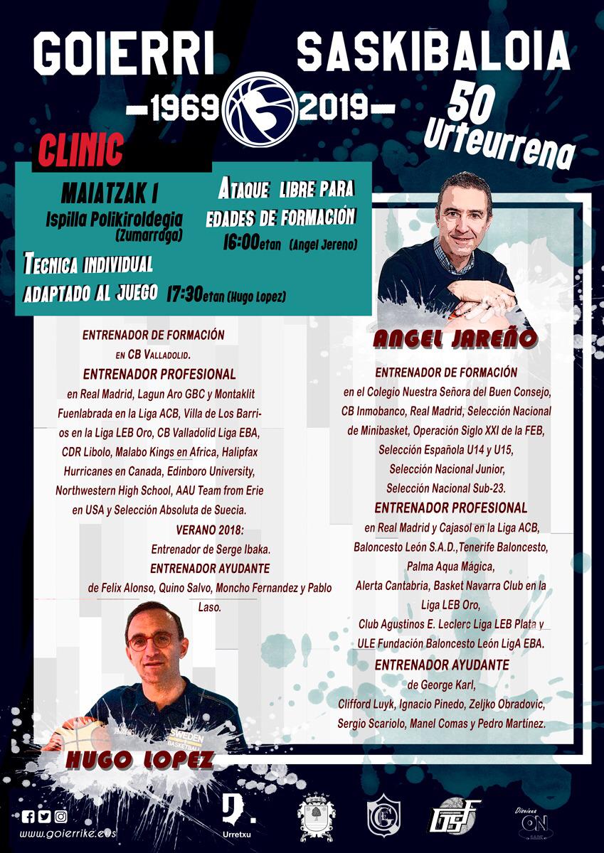 50. urteurrena dela medio, Goierri Saskibaloiak jendearentzat irekia izango den clinic bat antolatu du maiatzak 1ean eta luxu handiko hitzalariak edukiko ditu gainera Zumarragako Ispilla kiroldegian. Jardunaldia 16.00etan hasiko da “formakuntza adinerako eraso libreak” hitzaldiarekin, Angel Jareñok emango duena. 17.30etan Hugo Lopezek hartuko du hitza, “jokoari egokitutako norbanako teknika” emango duelarik.