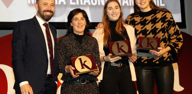 Gure kirola protagonista handienetakoa izan zen atzo gabean tabakaleran ospatu zen Gipuzkoako kiroletako sarien galan. Azu Muguruza, Maria Eraunzetamurgil eta Sara Iparragirre emakumezkoen Gipuzkoa Kirolak sariarekin  izan ziren goraipatuak, udan lortutako urrezko dominagatik Europako 20 urtez azpiko txapelketan.